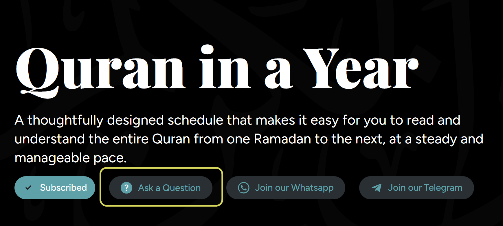 Visit Quran in a year to begin or continue your journey.